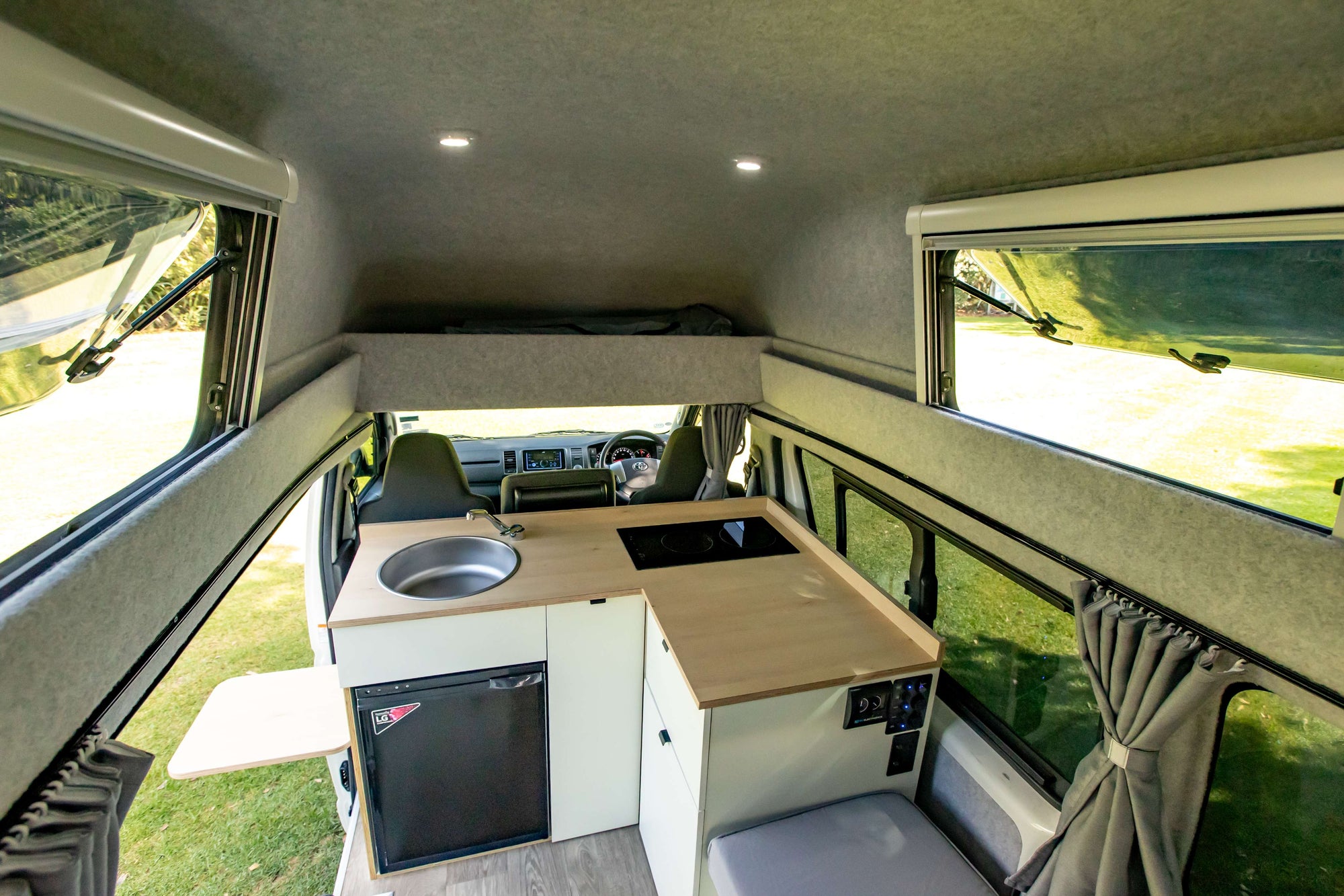 Each of our campervans are certified to accommodate three people and comes equipped with three legal seatbelts. However, the double bed is ideal for two adults but can also accommodate a child if there are three occupants.